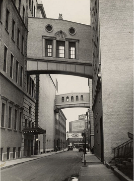 The second Eastman School Annex of twelve stories was built on the east side of Swan street and opened in 1927. It included two bridges to the Eastman School and provided classrooms, studios and soundproof practice rooms.two